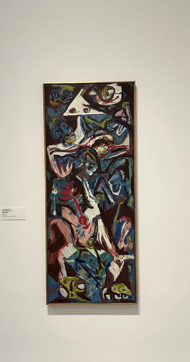 Capturing the rhythm of city life, this painting layers vibrant colors and sharp lines to create a sense of movement and energy.